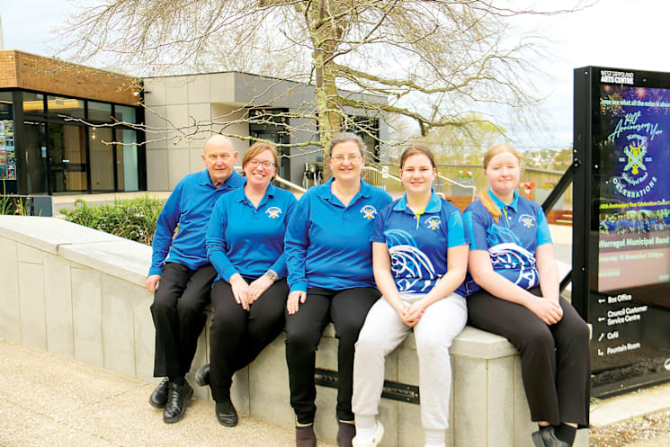 Family members George Runciman, Sarah Lucas, Emma Nicholson, Cerys Nicholson and Alana Lucas represent three generations of performers with the Warragul Municipal Band.