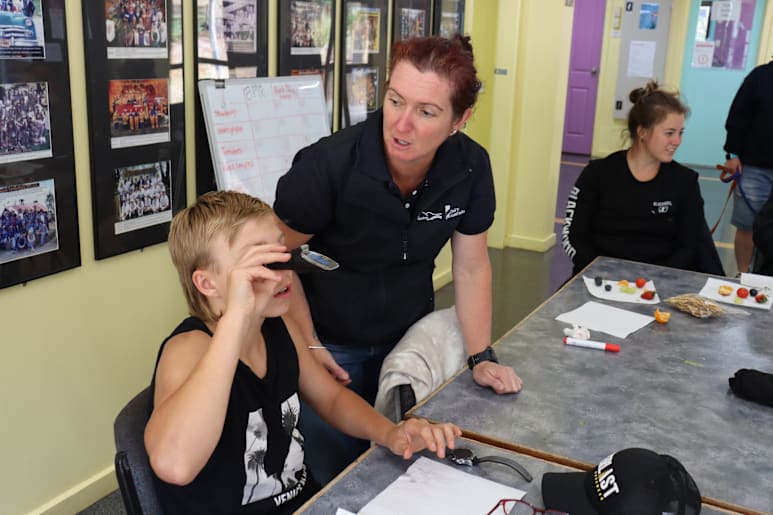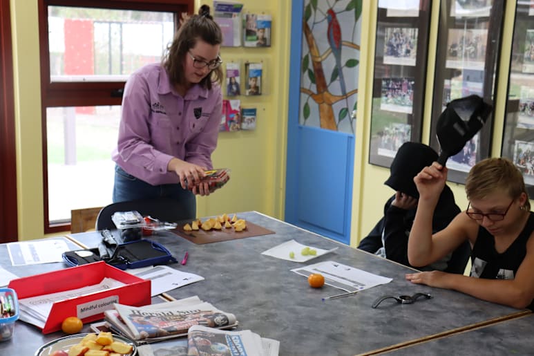 CQ University researcher Molly O'Dea shows students how "sweetness" of fruit is determined using instruments