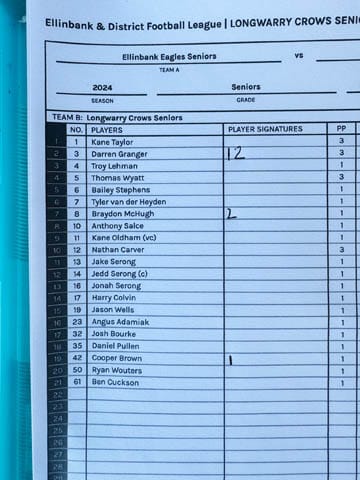 Football Seniors - Ellinbank Vs. Longwarry - 07.09.2024