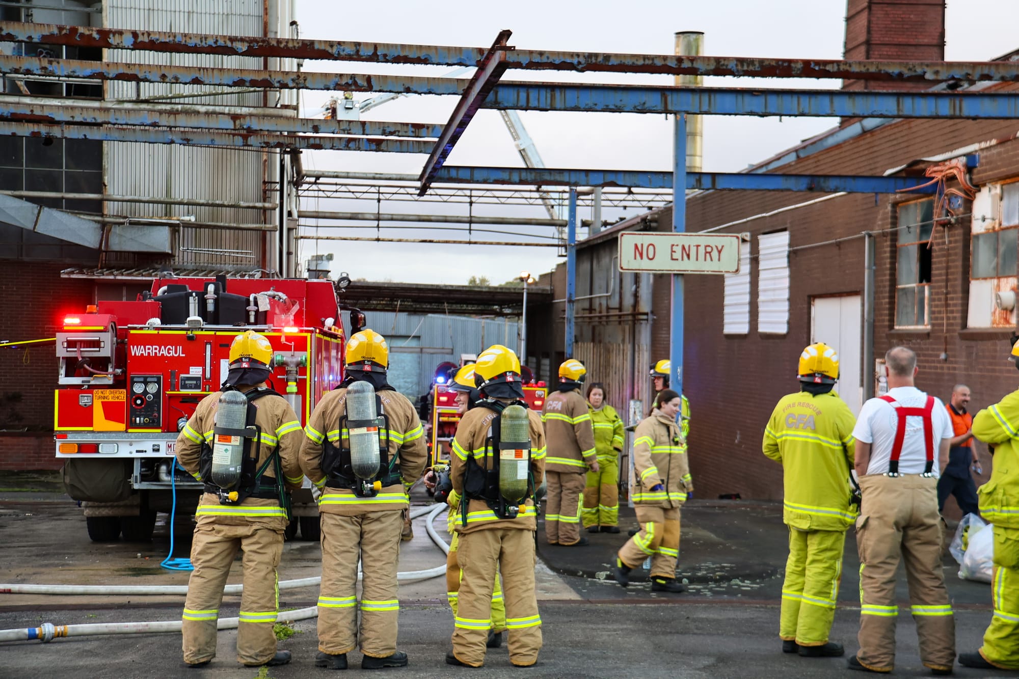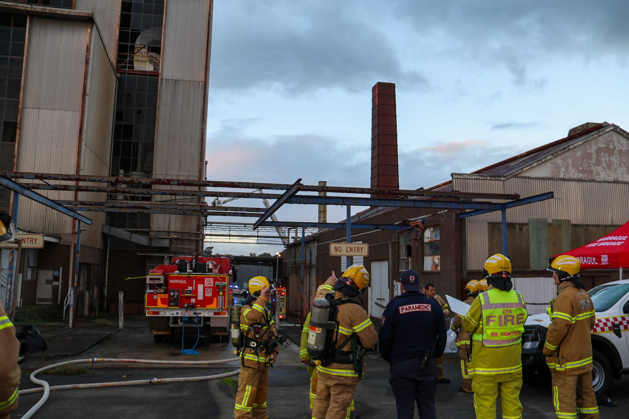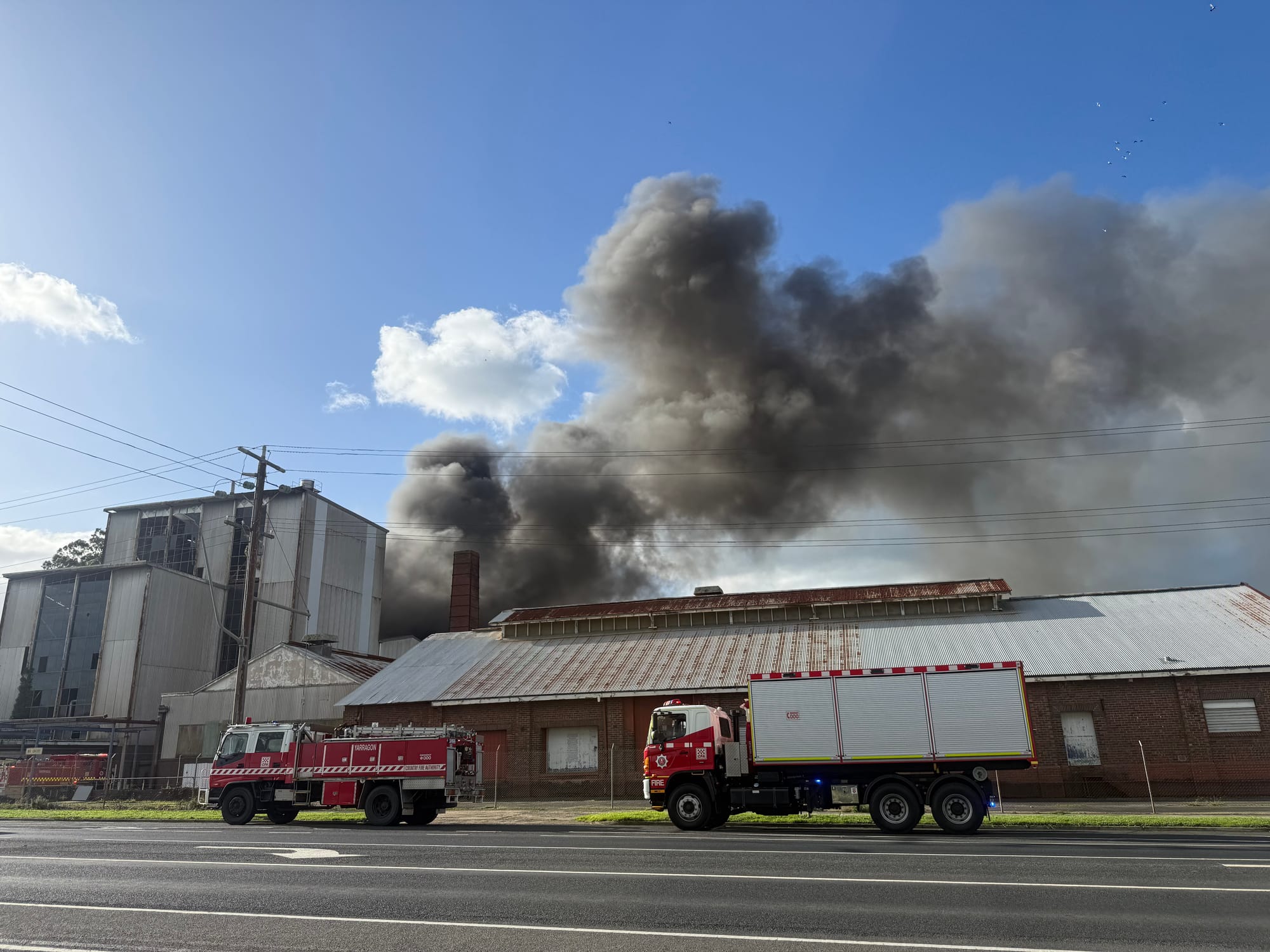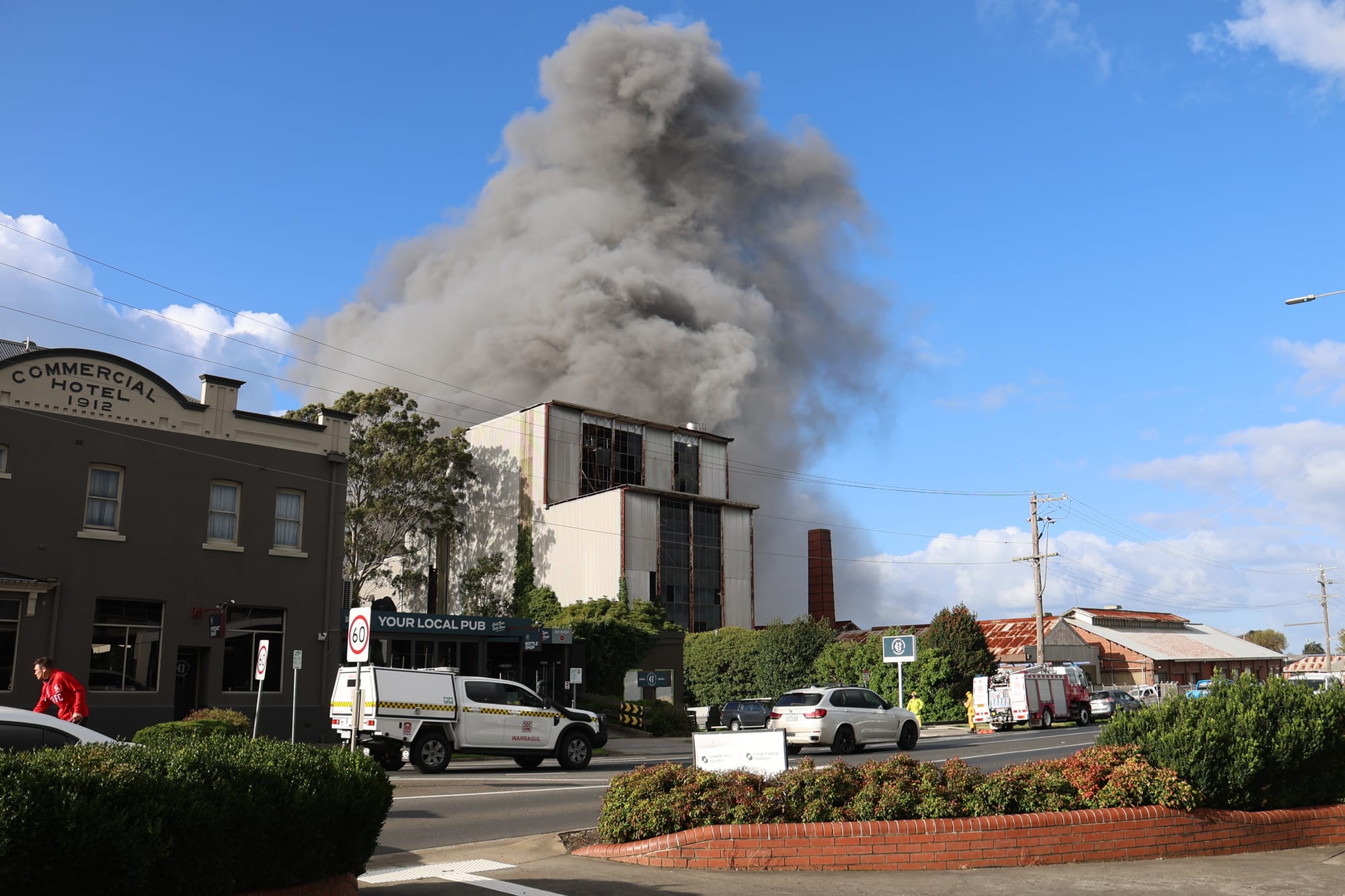 Eleven CFA units from Warragul, Drouin, Drouin West, Trafalgar and Yarragon responded to the scene, alongside Fire Rescue Victoria appliances from Moe and Traralgon, including ladder platform vehicles.