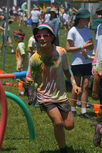 All levels tackled the obstacle course on the school oval, led by the prep students. Students were encouraged to wear white and given rainbow headbands and sunglasses to get into the explosion of colour theme.